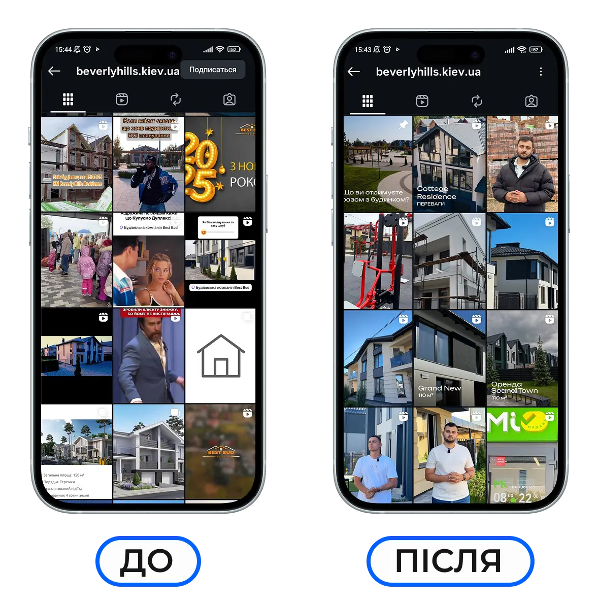 ведення сторінок Instagram з кроспостингом у Facebook (до/після);